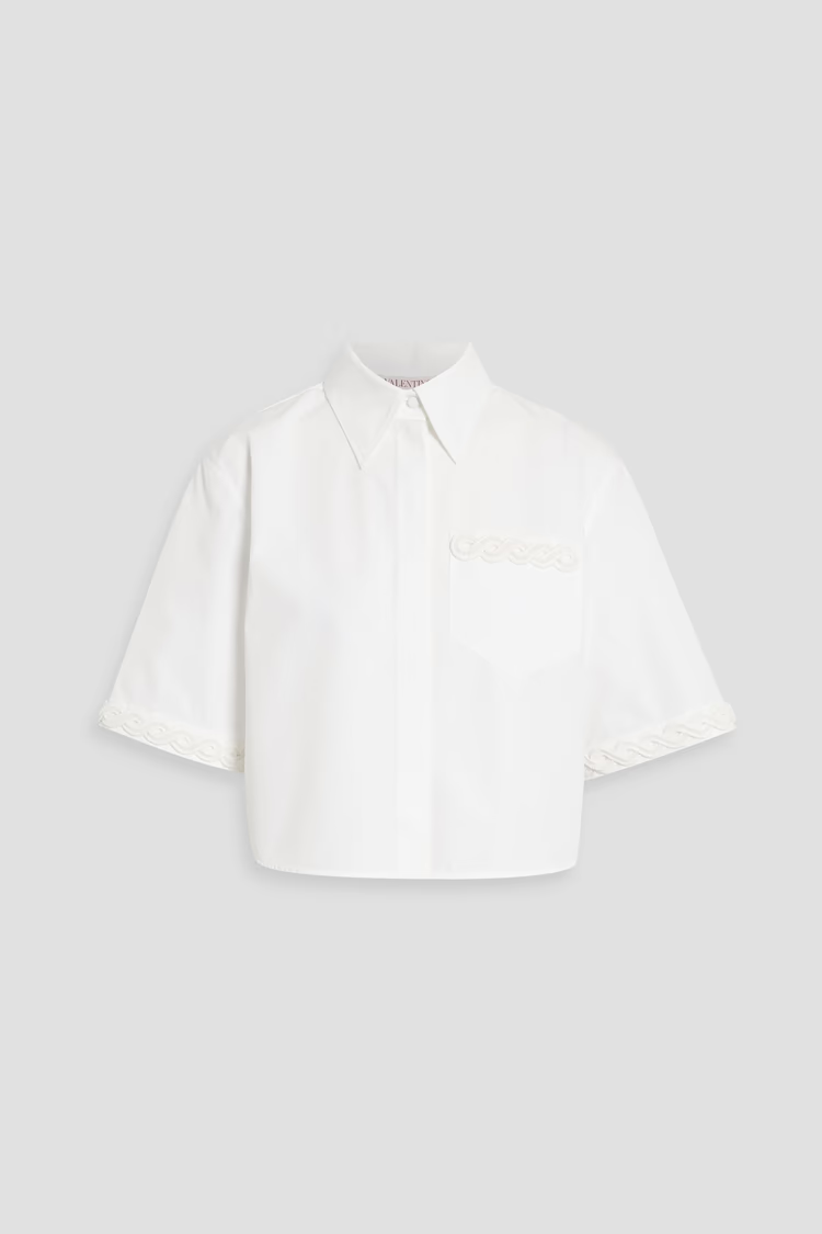VALENTINO GARAVANI Cropped bead-embellished cotton-poplin shirt